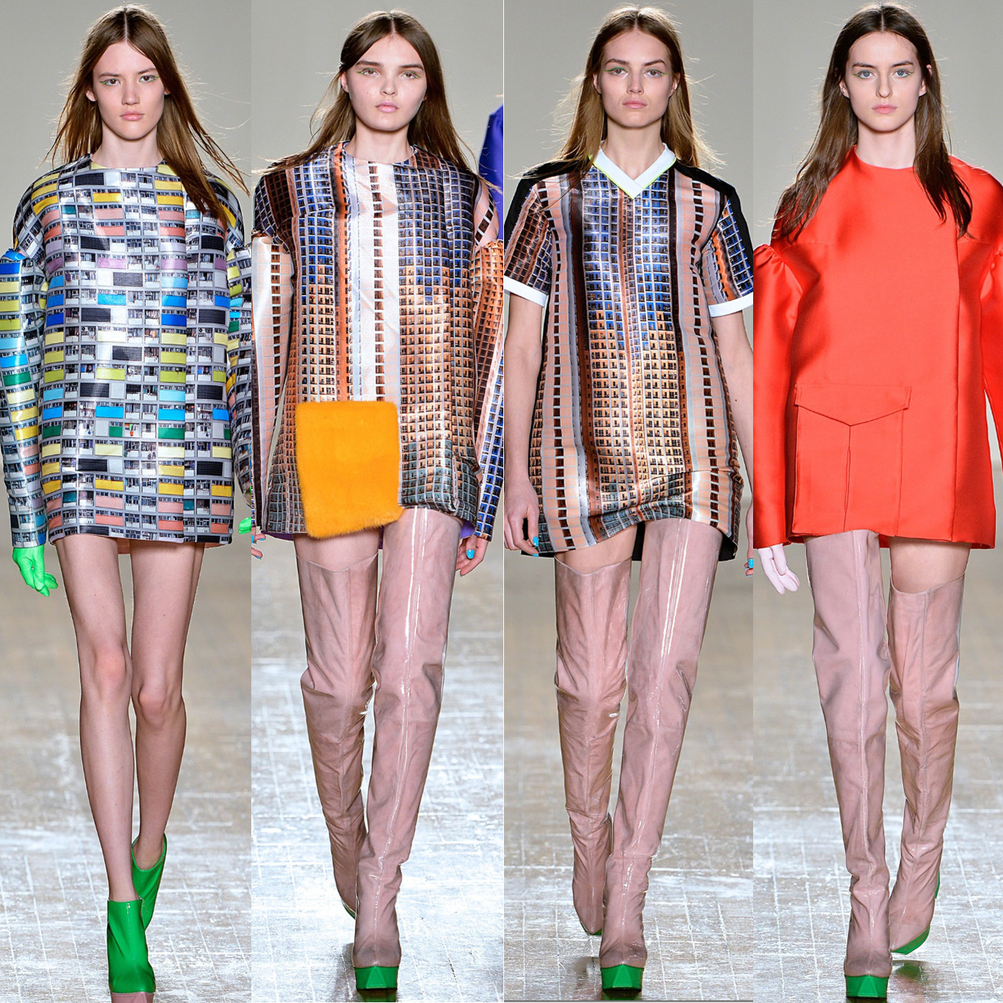 Both coming from a Fine Art background Fyodor Podgorny & Golan Frydman infuse an expressive approach with clean geometrical silhouettes and sportswear aesthetics into modern luxury womenswear. Playful adolescent aesthetics and pure colour combinations create a striking and psychedelic image. Manipulating materials through new technology brings to life distinctive textiles and 3D embroideries.