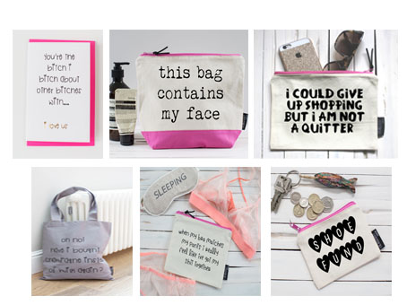 Lola and Gilbert are a London based brand producing make up bags, pouches, shoppers, greetings cards and other useful goodies emblazoned with a wide range of comtemporary and quirky quotes.