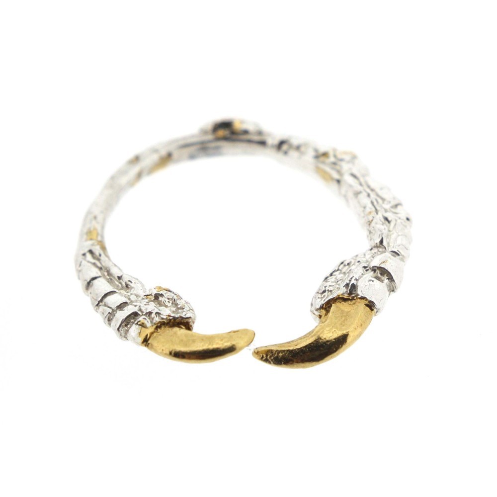 "The award winning Tessa Metcalfe Jewellery Collection is cast entirely from pigeons feet found from the city's road kill. Tessa creates narrative jewellery, lovingly setting precious jewels into the birds grasp and making miniature rings to adorn the birds claws the pleasure of her work can be seen all over the bold designs. Beautiful in their own right the pieces demand a closer inspection and invite the viewer to look differently at the neglected and feral pigeon.