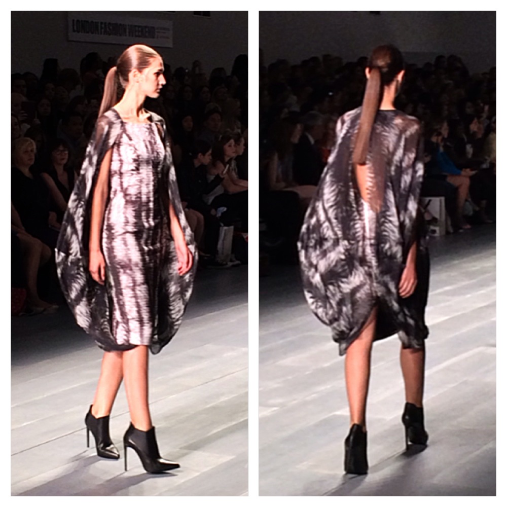 Her AW14 collection used paired-down hues - think blacks, browns and greys – with elements of chiffon and print. The addition of the leather meant a rough, raw edge was achieved. Speaking with the designer on stage, Angela Scanlon unraveled the intentions behind the collection, with Wakeley declaring “I’ve always loved to add a bit of an edge to it – whether it’s a strong bridal leather belt or something just to, you know, a really powerful shoe to make it a bit more edgy”.
