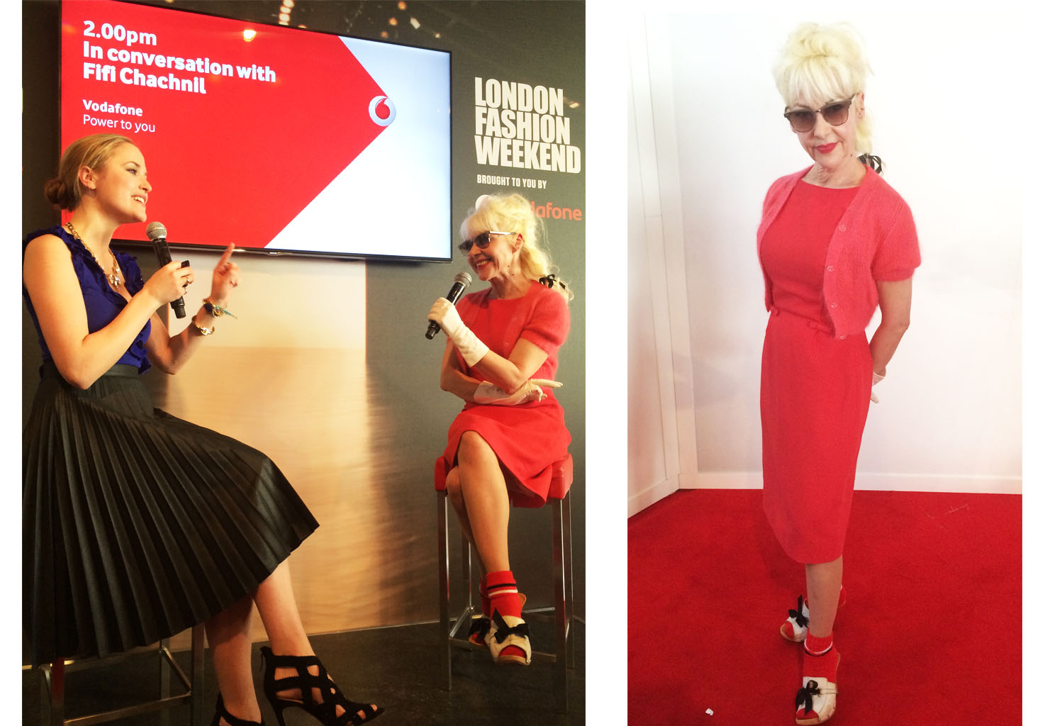 Fifi Chachnil is a wonderful lingerie designer all the way from Paris. With her upcoming 30th anniversary and the showing of her AW14 ready-to-wear collection at London Fashion Week, she is propelling London ladies into a seductive frenzy with her fabulously feminine pieces. I must admit, I wasn't all too familiar with Chachnil before Vodafone London Fashion Weekend but I did some research and her lingerie is b e a u t i f u l. In an exclusive interview with Chachnil she explained she creates "for the feminine silhouette" and this is obvious throughout all of her collections. Inspired by the real feminine body, curves and all, she focuses on making women feel good through flirtatiously adorned lingerie. There is not a piece of her collection lacking in decoration, from feathers to lace and gorgeous fabrics. A Parisian brand at heart, an element of the fantastical and classic Parisian woman is always present and Chachnil was an elaboration of this. She tottered into the Live lounge wearing chic white gloves and petite block heels, in pink of course. It was a wonderful insight into the world of Lingerie, and if you're feeling a little bit curious why don't you visit her website here. Go on, I know you want to...