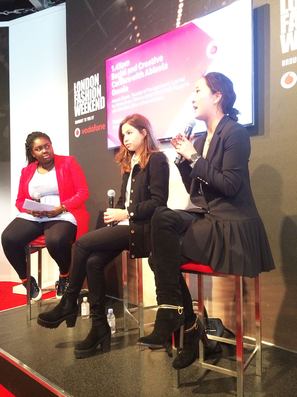 By now I was all too familiar with my daily routine of getting into London, walking across Waterloo Bridge and submersing myself into a world of fashion and creative expression. Day four bought about some pretty mind-blowing talks, one moment I was listening to the development of a useful fashion app, the next I was on tenterhooks watching the founder of Suitcase mag detail her life journey to an anticipating audience.