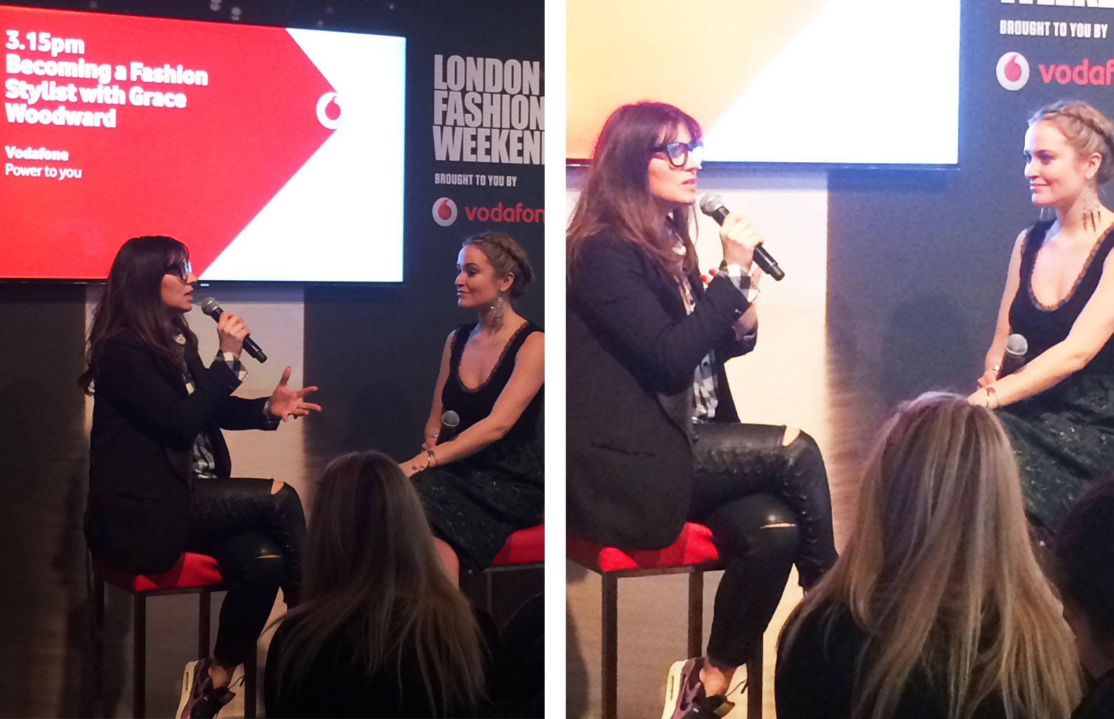Grace Woodward is a Fashion Stylist and Presenter, famous for her judging role on Britain and Irelands Next Top Model. She was Fashion Director for the 2010 X Factor series and is well known for her outspoken and bubbly personality and individual take on fashion. Talking with Antonia O'Brien in the Vodafone Live Lounge gave us a real insight into Woodward and how she got to where she is today. "It took me ten years to break it" she explains, and through all those ten years she has hardly any money. She elaborates that after the initial hard stint, people realised she was "a stayer" and she couldn't be happier with her job. A hoarder at heart, (she has two rooms in her house full of vintage clothes), Woodward is a character. She would much rather style a shoot with meaning and use clothes to tell a story than just to look good. That is perhaps why a career highlight of hers was styling an up and coming singer that didn't use her body to sell her music. "It was really refreshing" Woodward explains. My ears pricked up when she mentioned Joel & Sons, a haberdashery shop in London that sells couture fabrics left over from the designers amongst many other sewing treasures. As many of you may or may not know, I make my own bags with remnant fabric and love to sew. This shop is my idea of heaven and I love nothing more than browsing through a pile of gorgeous fabrics for a bargain. As Woodward explained, the shop isn't cheap and she often finds herself "drooling" over the fabrics, but it's definitely worth a cheeky visit. The shop is where Woodward purchased the fabric make her famous Boudicca jacket, as seen in the David Bowie Exhibition at the V&A - another career highlight.