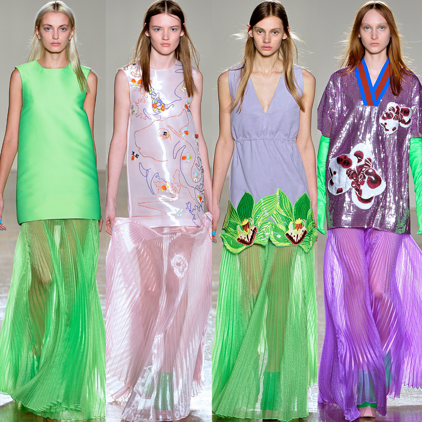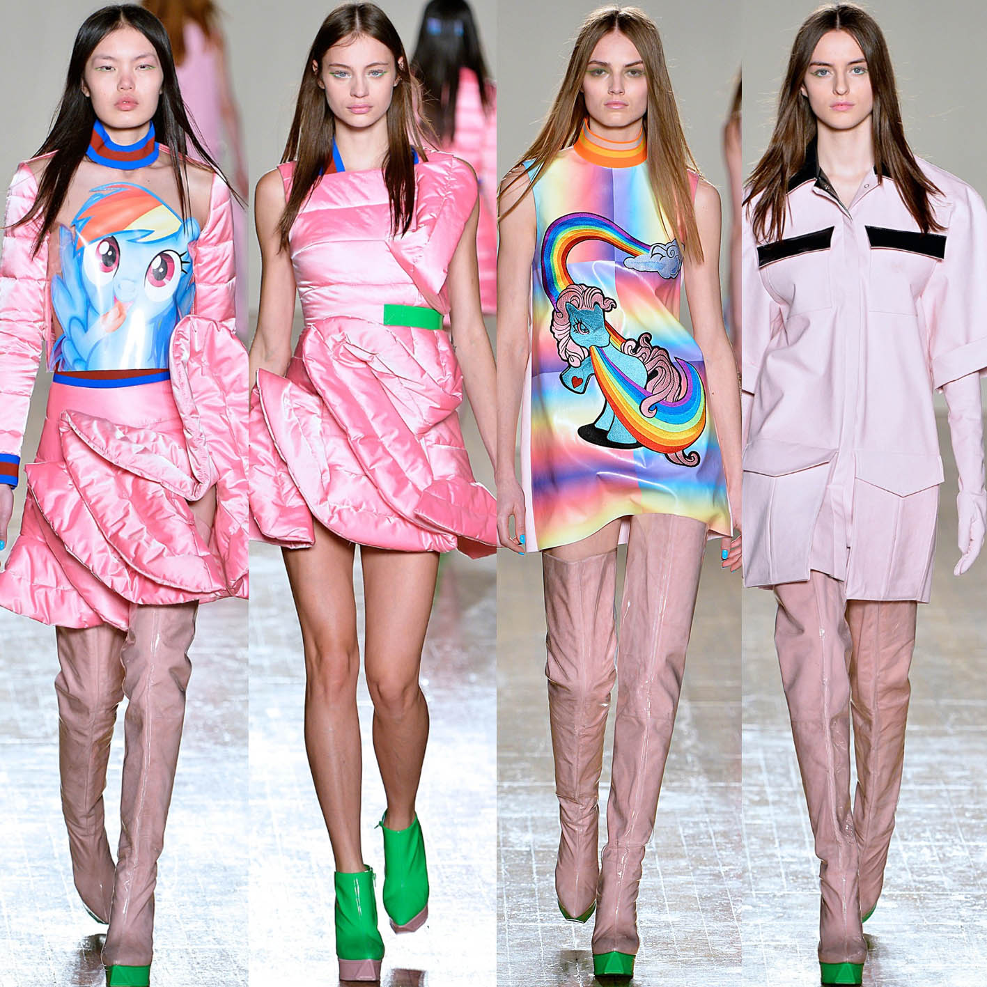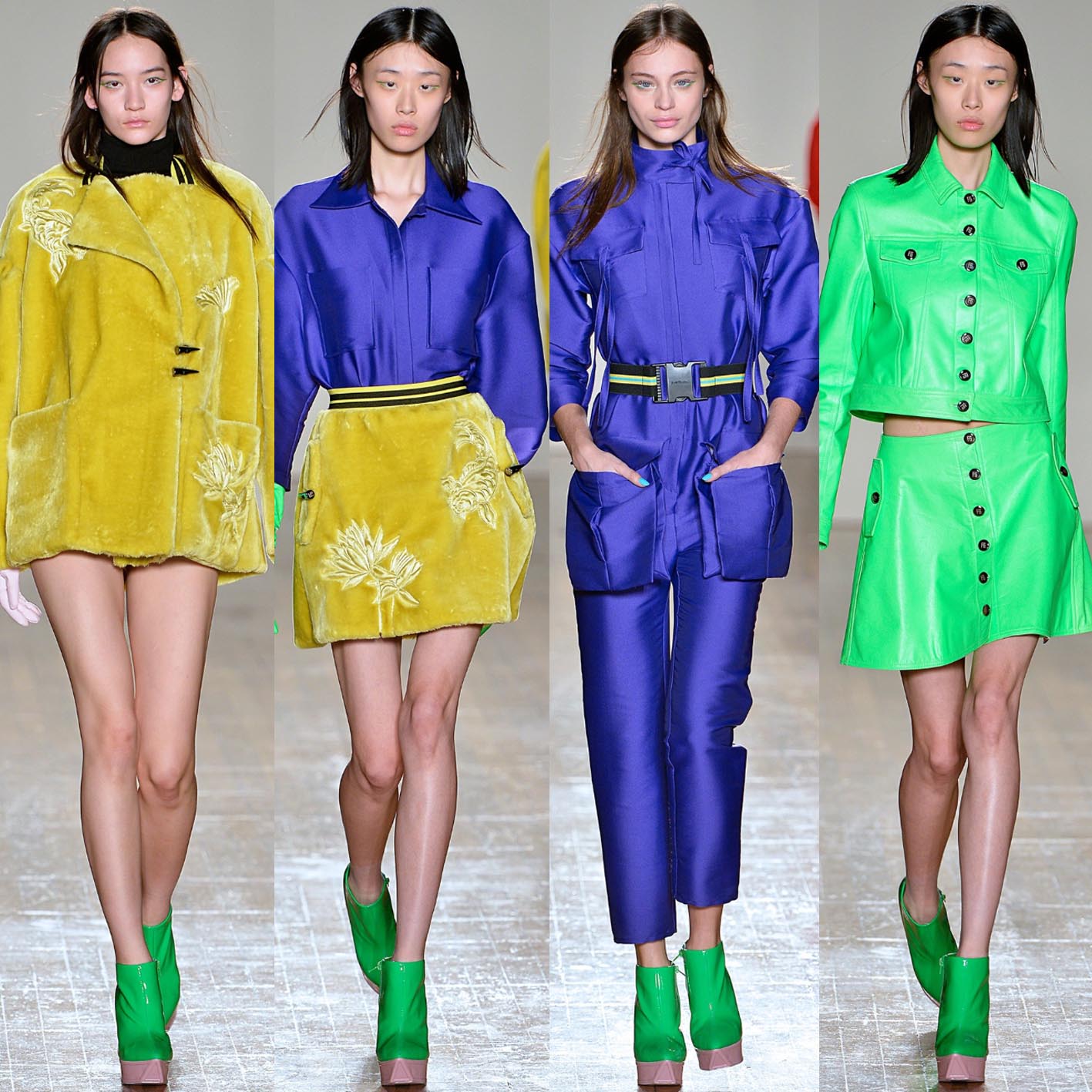 Both coming from a Fine Art background Fyodor Podgorny & Golan Frydman infuse an expressive approach with clean geometrical silhouettes and sportswear aesthetics into modern luxury womenswear. Playful adolescent aesthetics and pure colour combinations create a striking and psychedelic image. Manipulating materials through new technology brings to life distinctive textiles and 3D embroideries.