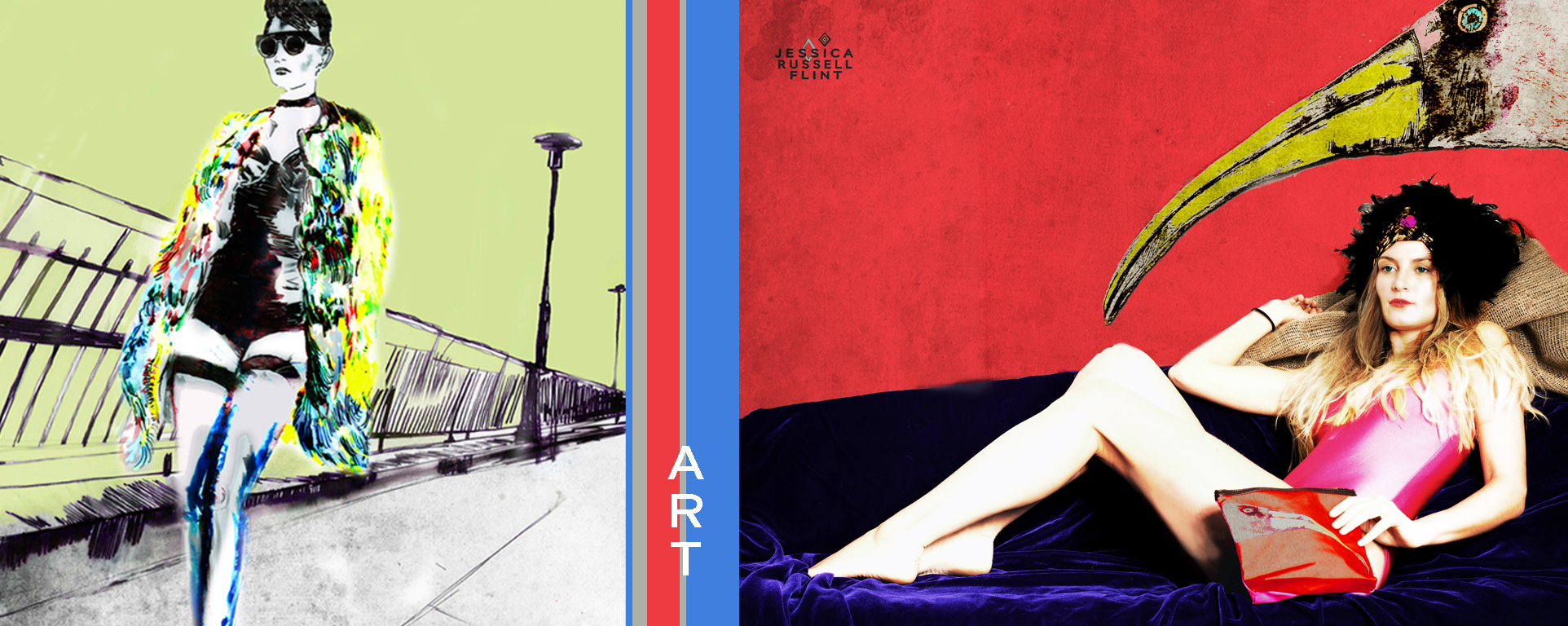 Inspired by life's eccentricities, Jessica Russell Flint's style is both vivacious and unusual. Through the transformation of her limited edition artwork she has produced design ranges from fashion accessories and beachwear to unusual home textiles and wallpapers. The colours and bright, the textures are wild...and so are the concepts.