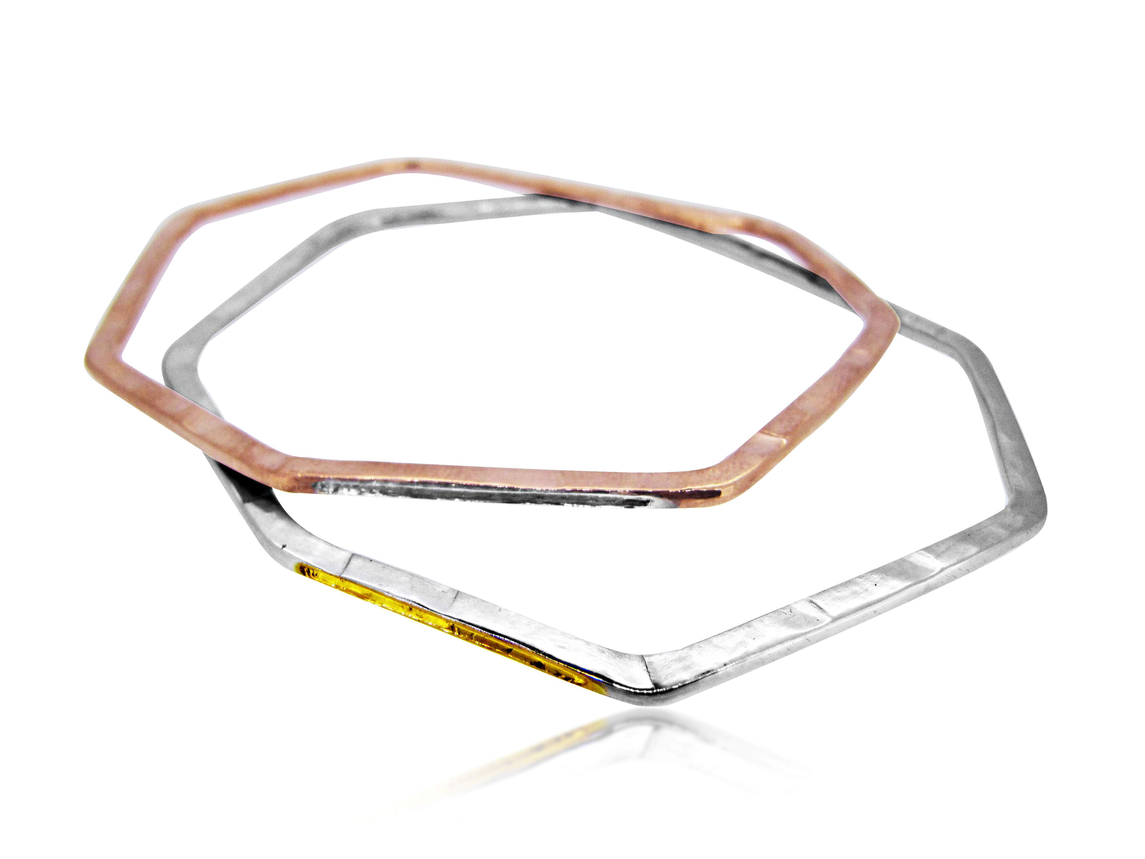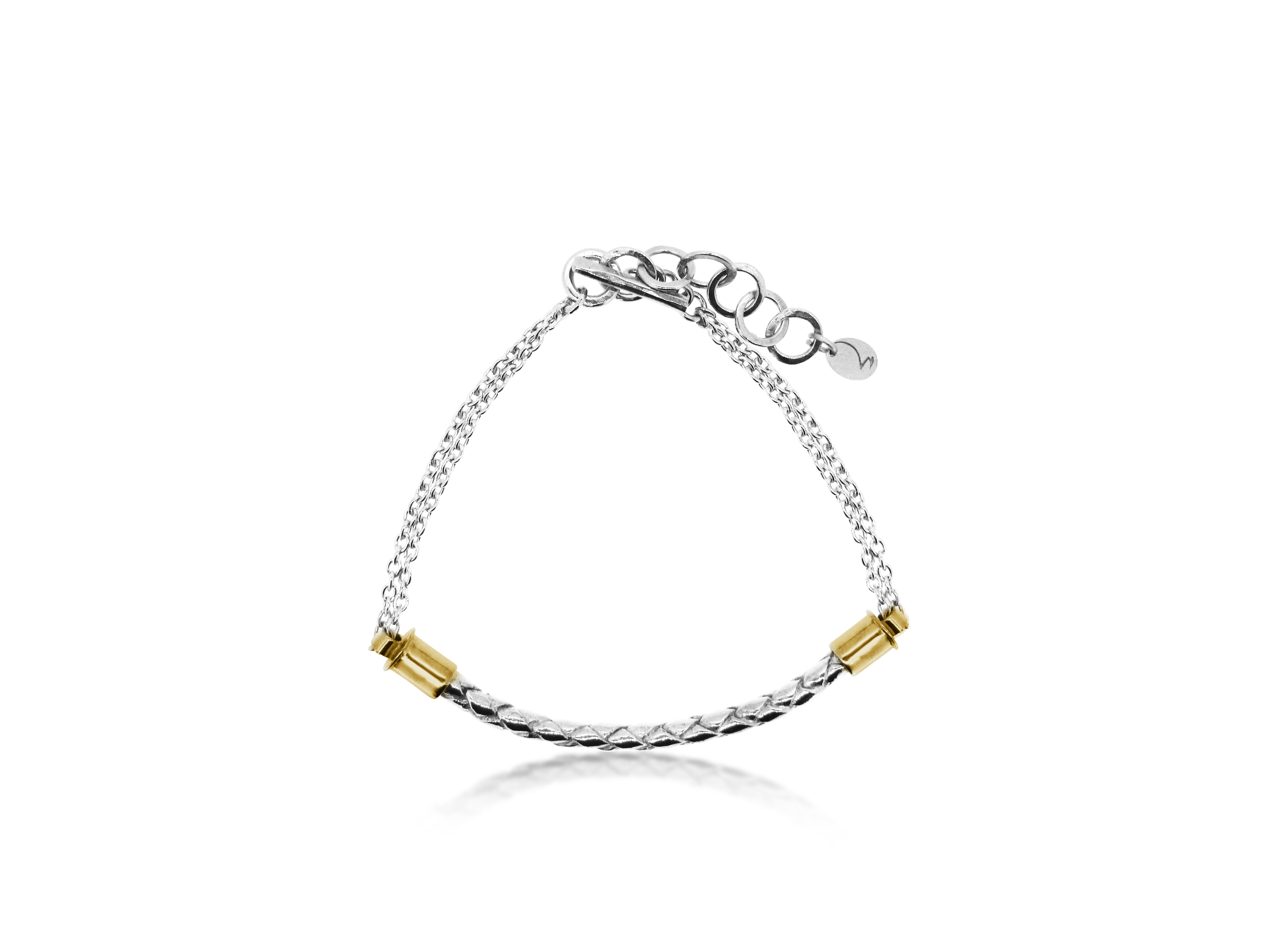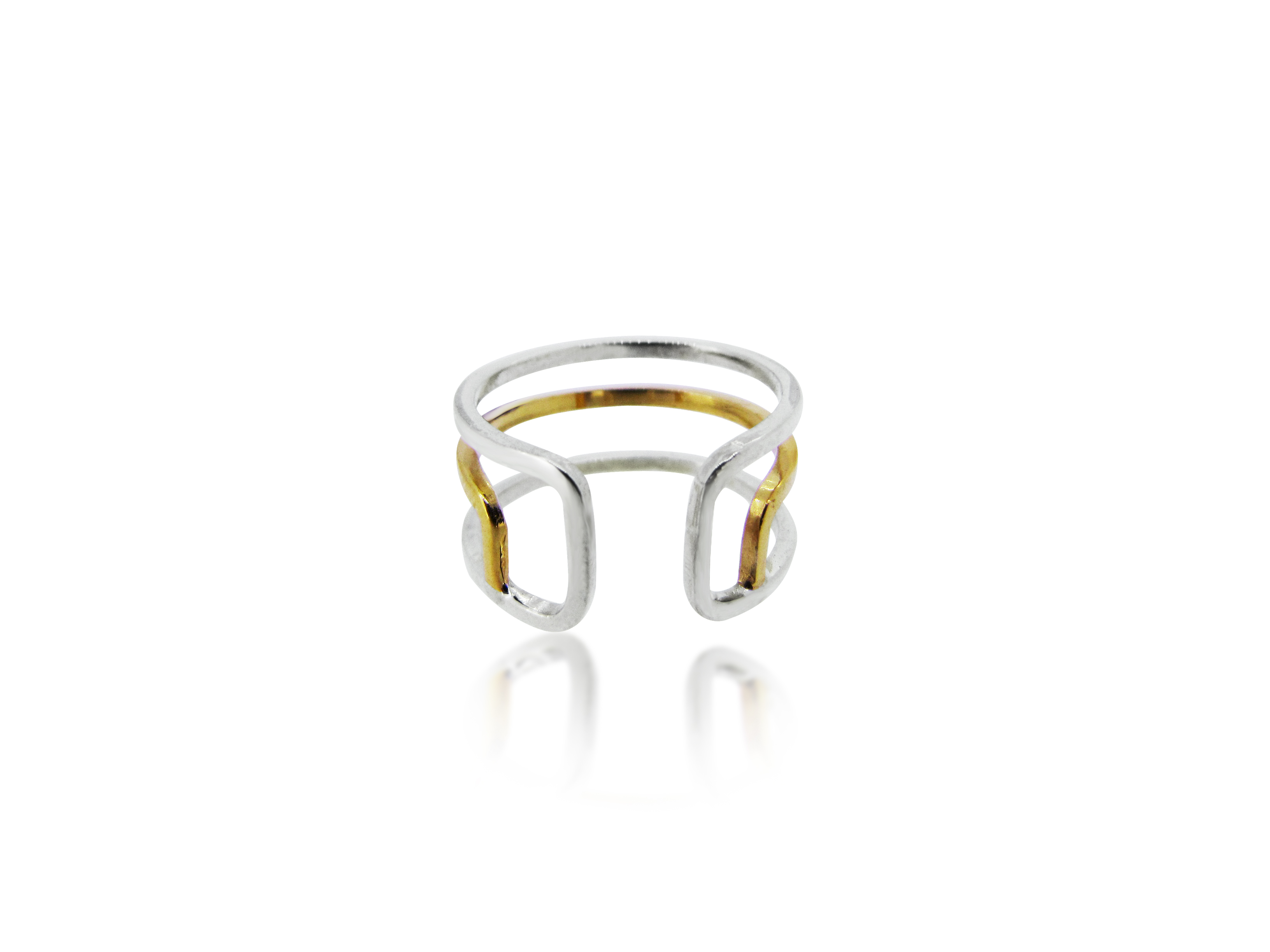 Focusing on graphic, dual lines, Parallel perfectly captures the brand's understated aesthetic and trademark intertwining of silver and gold. Alongside subtly contrasting finishes, it signifies her signature classic, laid-back look. These versatile designs, and a core range of double and midi rings, can all be worn on their own yet work equally well multi-layered, stacked, and mixed with other jewellery from the Maya Magal collection.